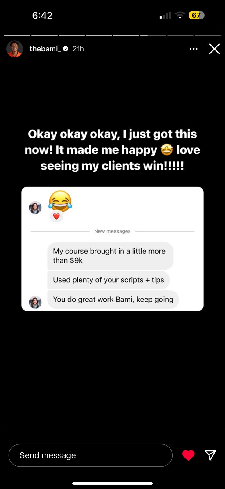 "I just landed the first $4,000 client! You’re right, messaging is everything!"